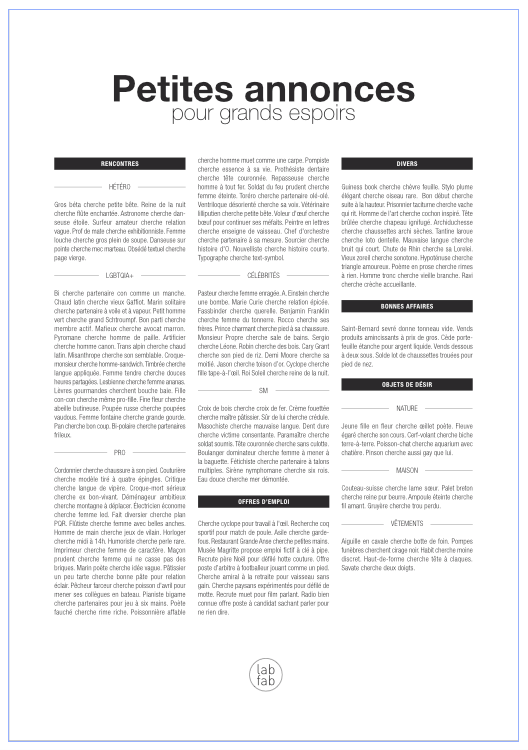 En 2024, j’ai eu une carte blanche pour exposer à La Tête dans les étoiles à Saint-Gilles-les-Bains. J’ai proposé une vingtaine de petites annonces, accompagnées de quelques textes plus personnels sous forme de petits livres, carnets et autres text-toys, ainsi que quelques-unes de mes séries photographiques. Extraits choisis.