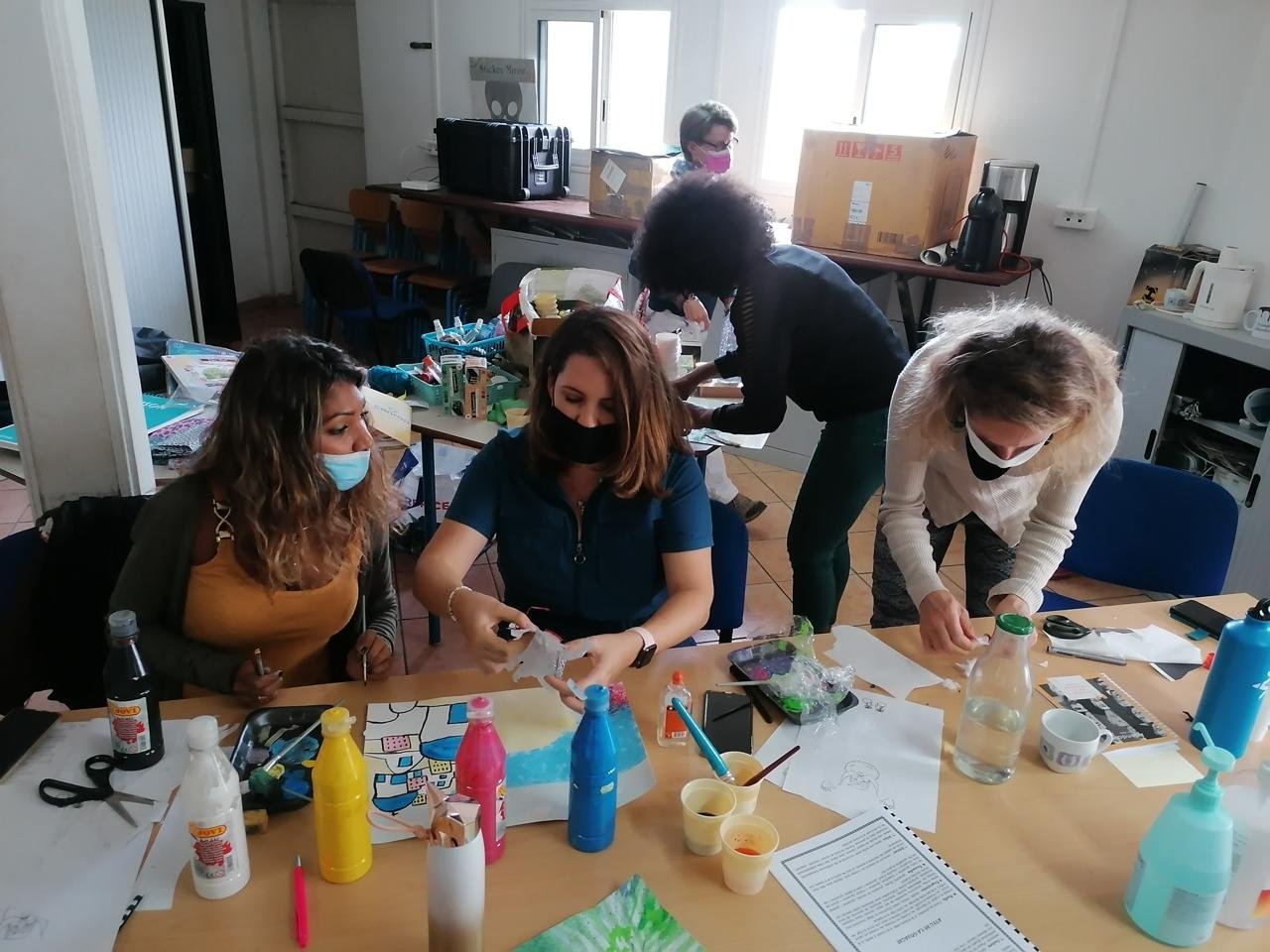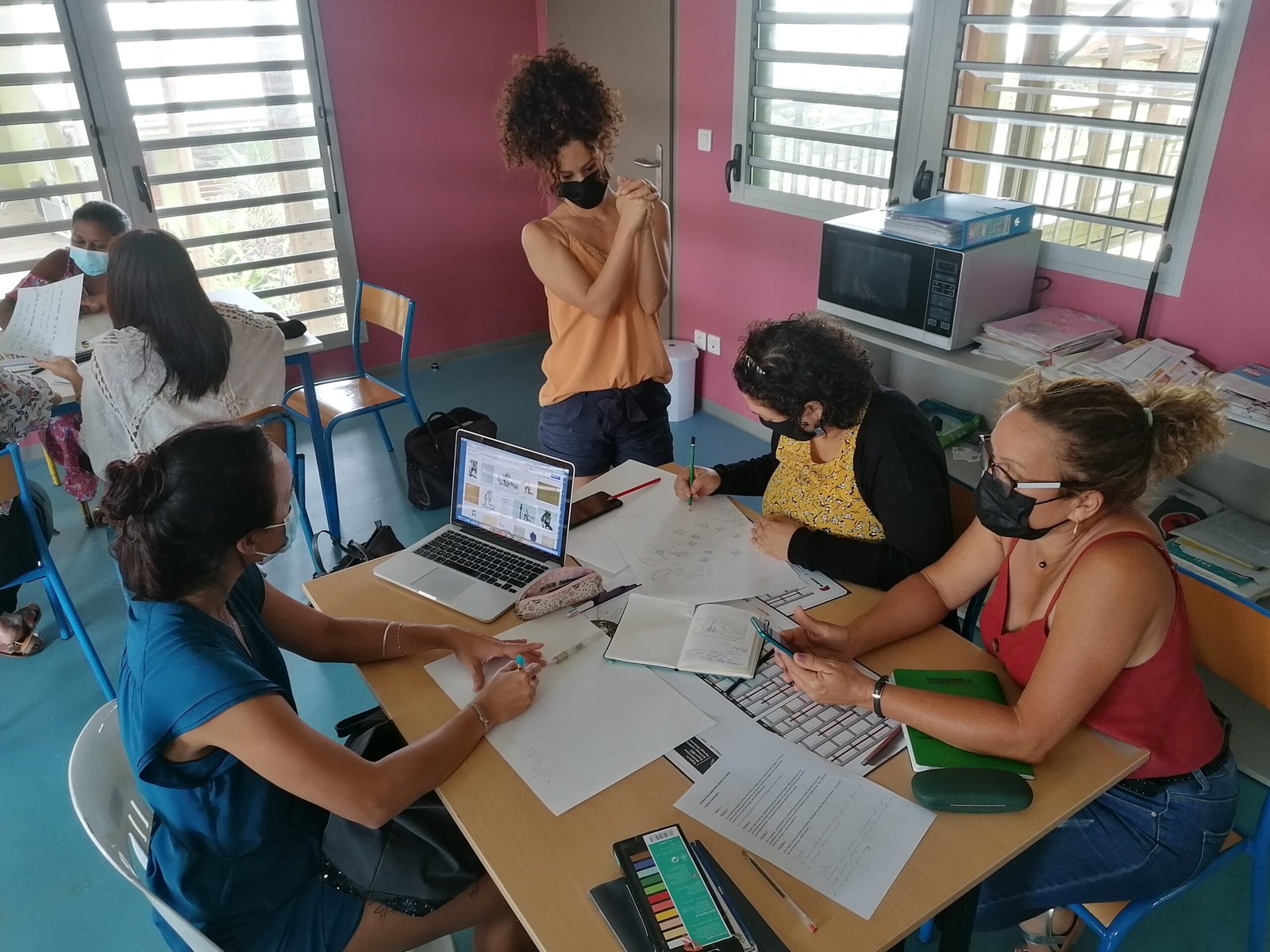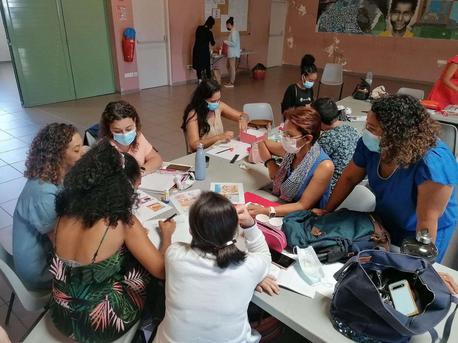 Depuis le début des années 2000, je dispense régulièrement des formations autour d’albums, de dispositifs comme Raconte-moi l’œuvre, de supports comme le kamishibai, mais aussi des formations à l’animation d’ateliers d’écriture ré.créative. Ces formations s’adressent aussi bien à des bibliothécaires, qu’à des enseignants, des étudiants, des médiateurs…