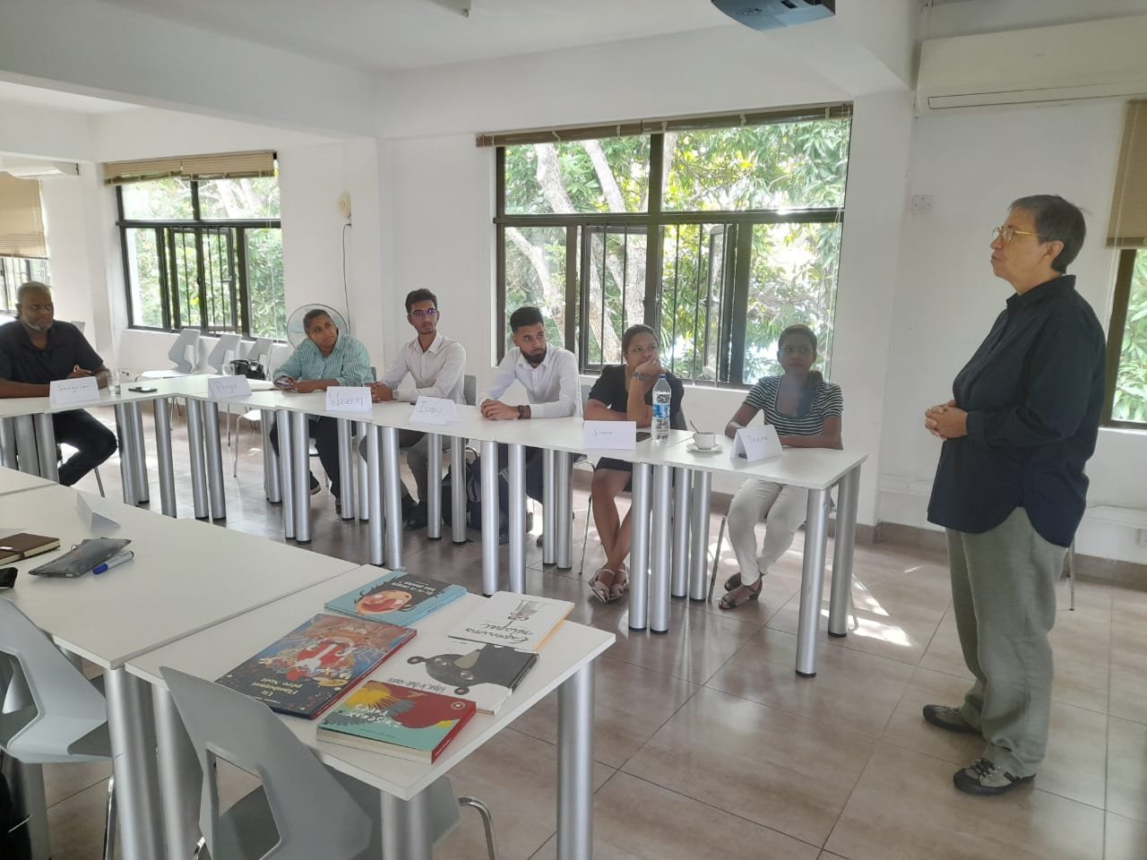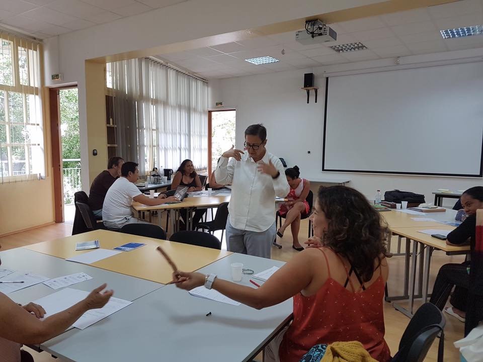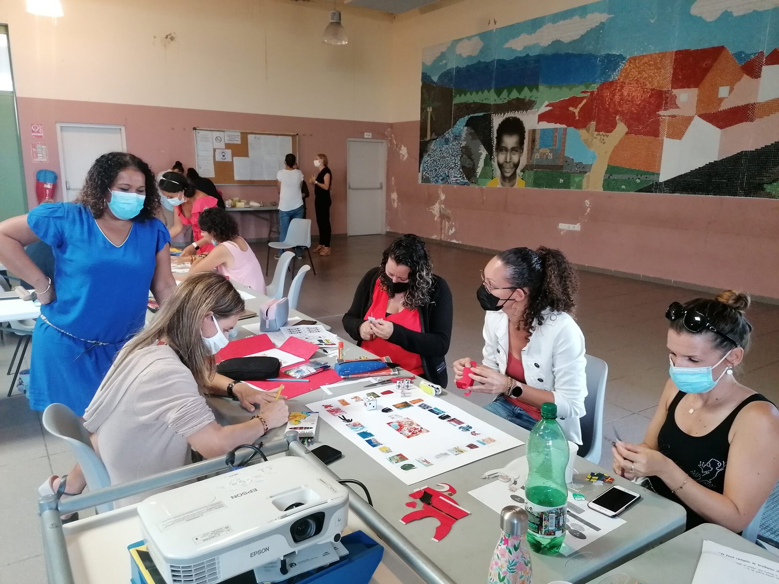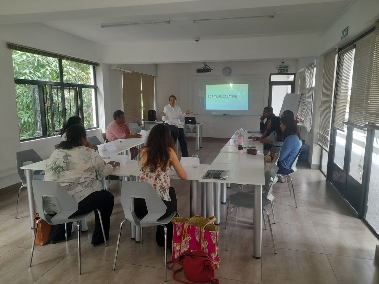 Depuis le début des années 2000, je dispense régulièrement des formations autour d’albums, de dispositifs comme Raconte-moi l’œuvre, de supports comme le kamishibai, mais aussi des formations à l’animation d’ateliers d’écriture ré.créative. Ces formations s’adressent aussi bien à des bibliothécaires, qu’à des enseignants, des étudiants, des médiateurs…